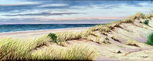 2024Zeezicht, met ondergaande zon, fantasie-aquarel